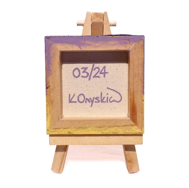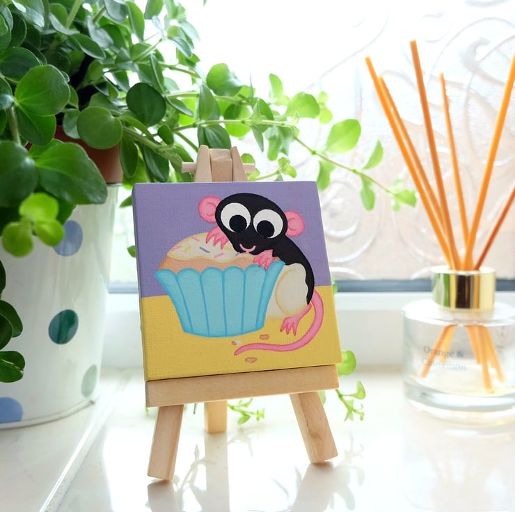 The little hungry rat is painted in acrylics on a 7cm (2.8") square canvas and is signed and dated on the back.