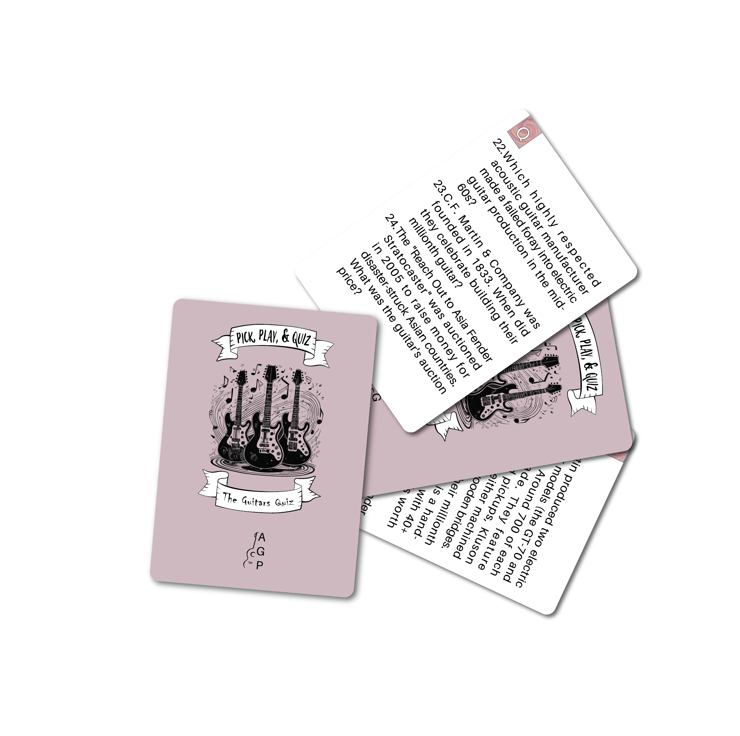 Looking for the perfect guitar gift? "Pick, Play, and Quiz: The Guitars Quiz" is an engaging card game that makes a great present for any guitarist, whether for Christmas, Father's Day, birthdays, or just because.