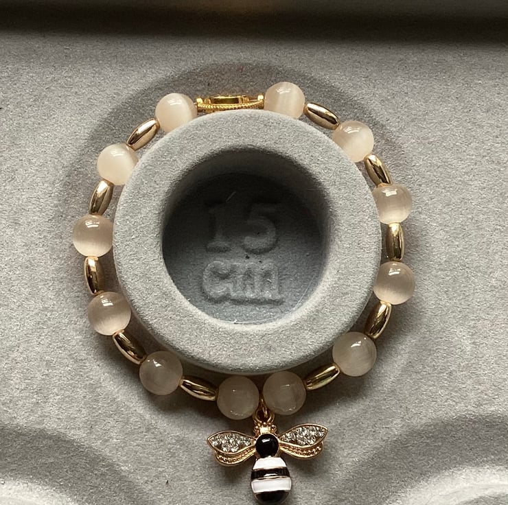 Bright, easy to use and eye catching accessories. I’ve used Cats Eye Beads and Glass Czech Beads.