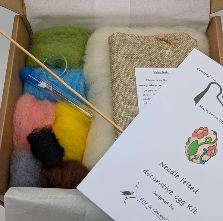 An easy to follow booklet and video link is included along with needles, felting pad and clear stand for your egg
