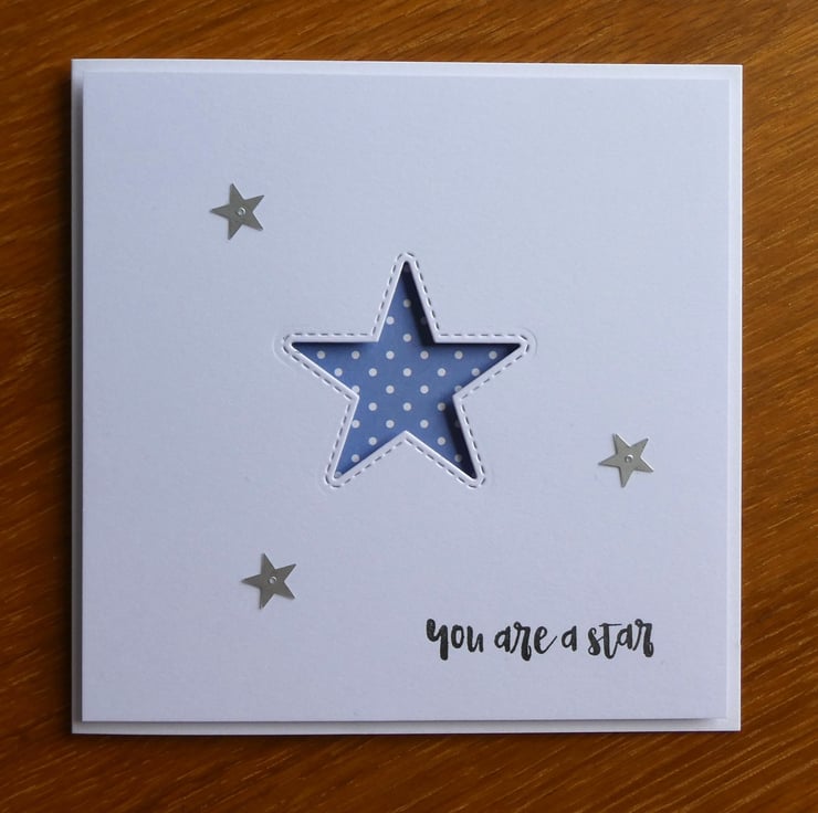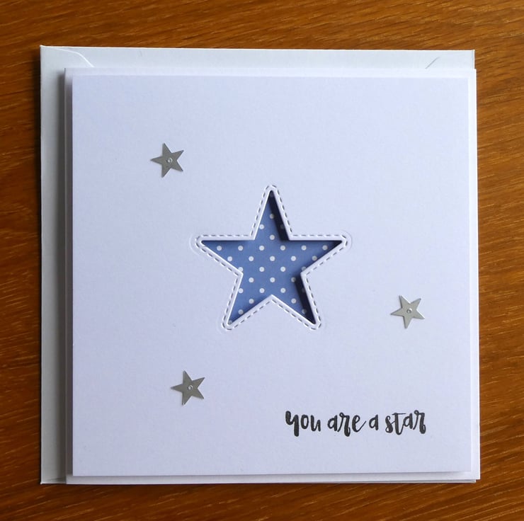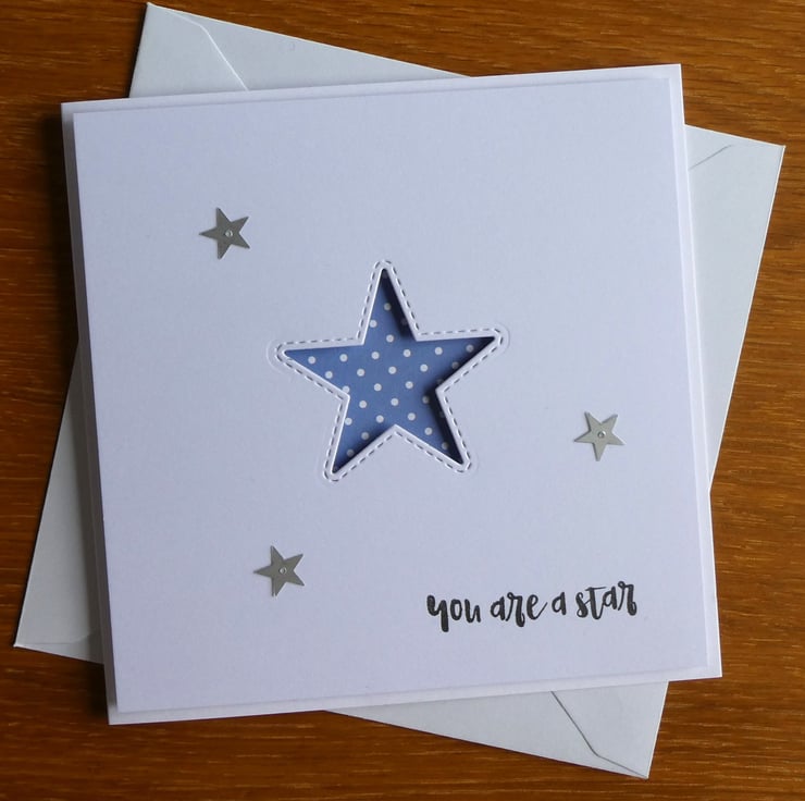 Let someone know that you think they are a star with this card. Ideal to send as a thank you card or a congratulations card for many different occasions.