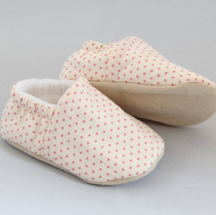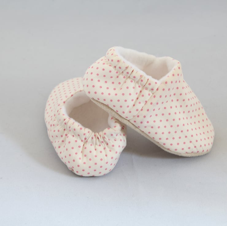 These little baby shoes have been made to fit a 3-6 month baby (UK size 2) length of sole is 11.4CM This is the average size for this age group. Please be sure to measure your little ones feet to make sure they are the right size.