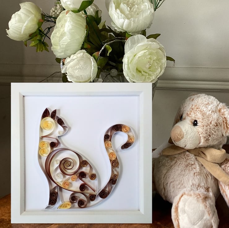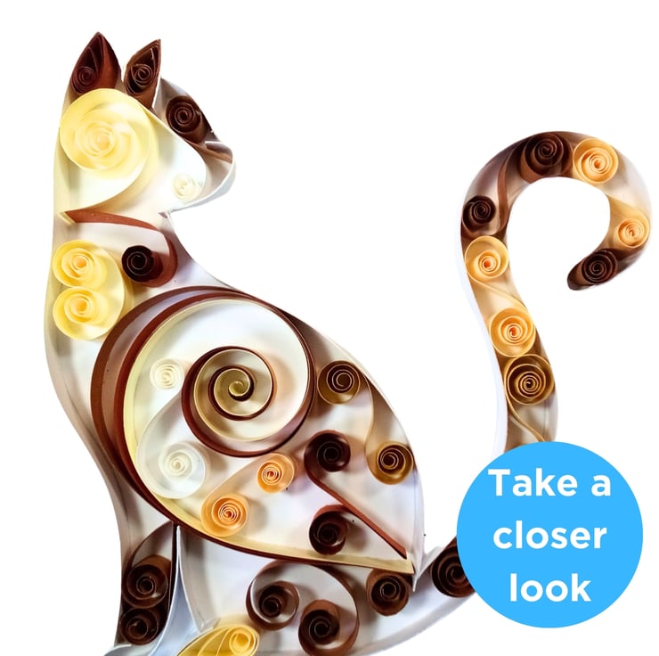 This dainty cat, made from delicate curls and swirls of hand rolled paper strips, would look purr-fect on the walls of an older girl's bedroom.