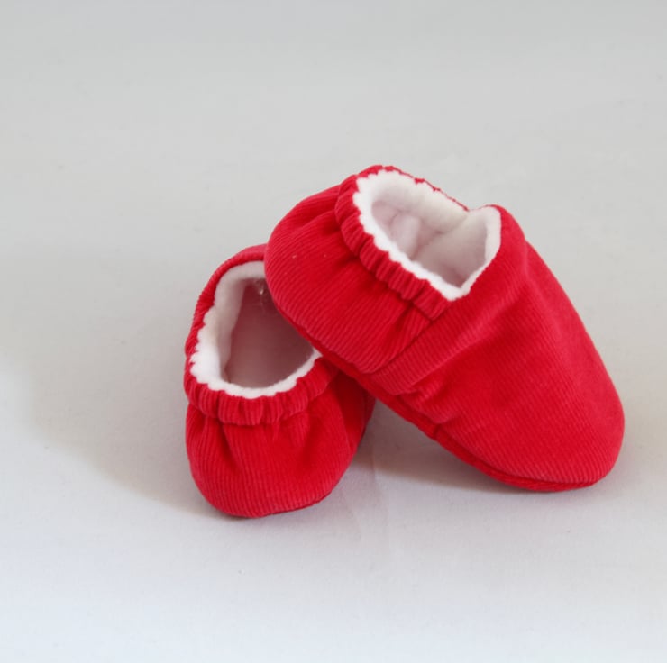 These little red corduroy shoes have been made to fit a 0-3 month baby (UK size 1) sole length 10.5CM.