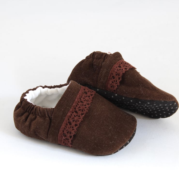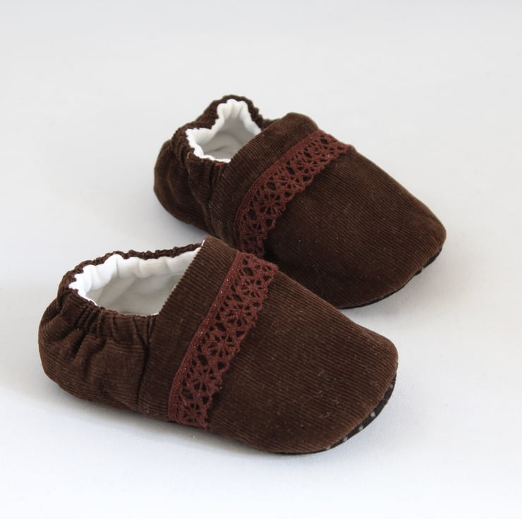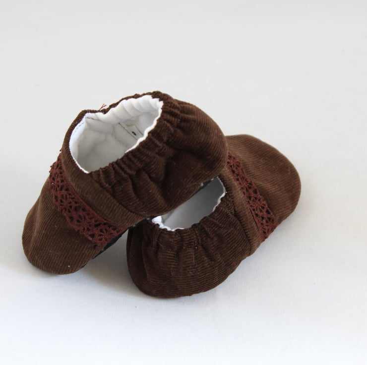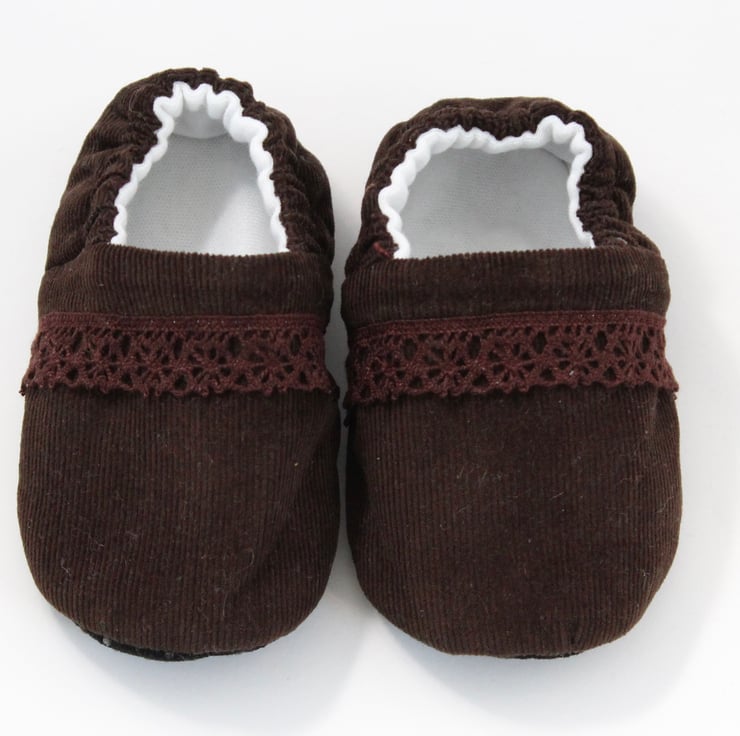 Outer shoe is a dark brown cotton corduroy with coordinating lace