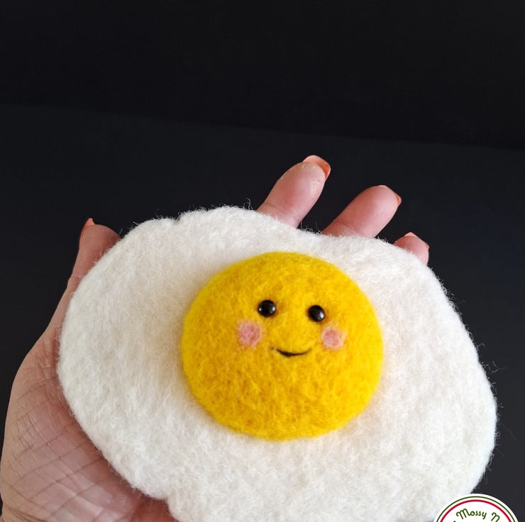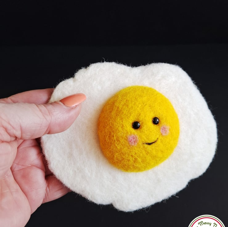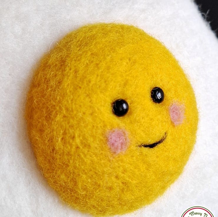 I don’t know why but I felt the need to needle-felt a fried egg. And make it a happy one. So here we are- a happy fried eggy!