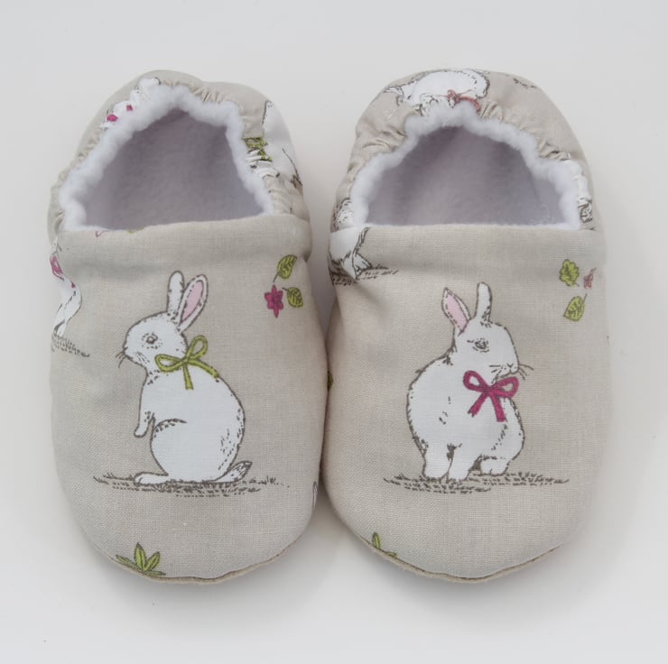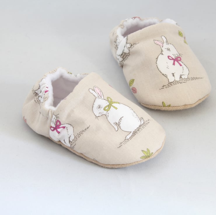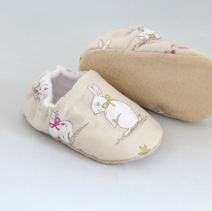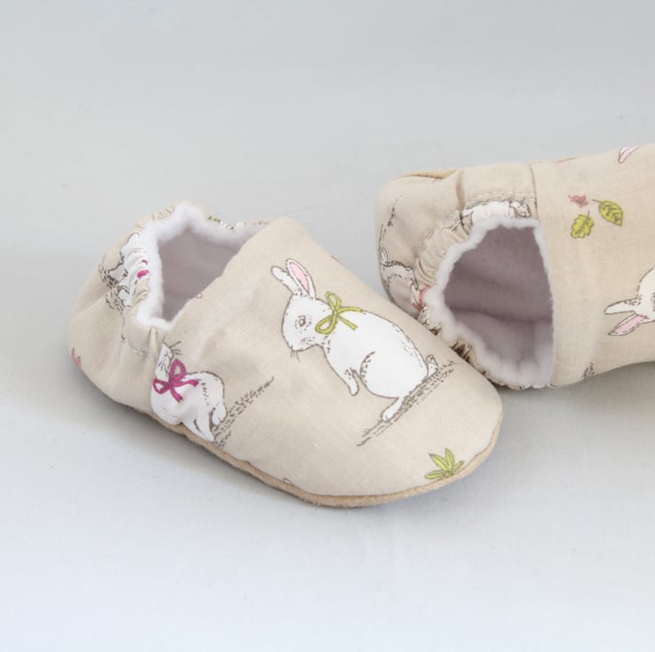 These cotton baby shoes have been made to fit 9-12 months (UK size 4) the length of the sole is 13CM