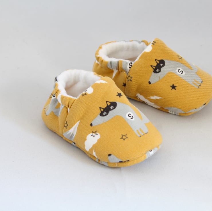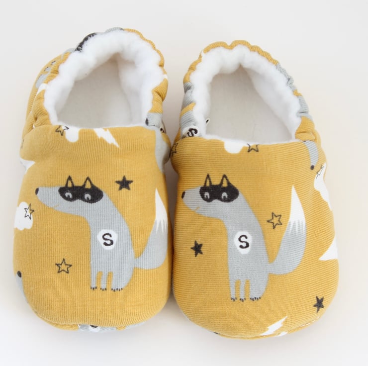 3-6 months baby booties with fox on front, baby shoes, pram shoes