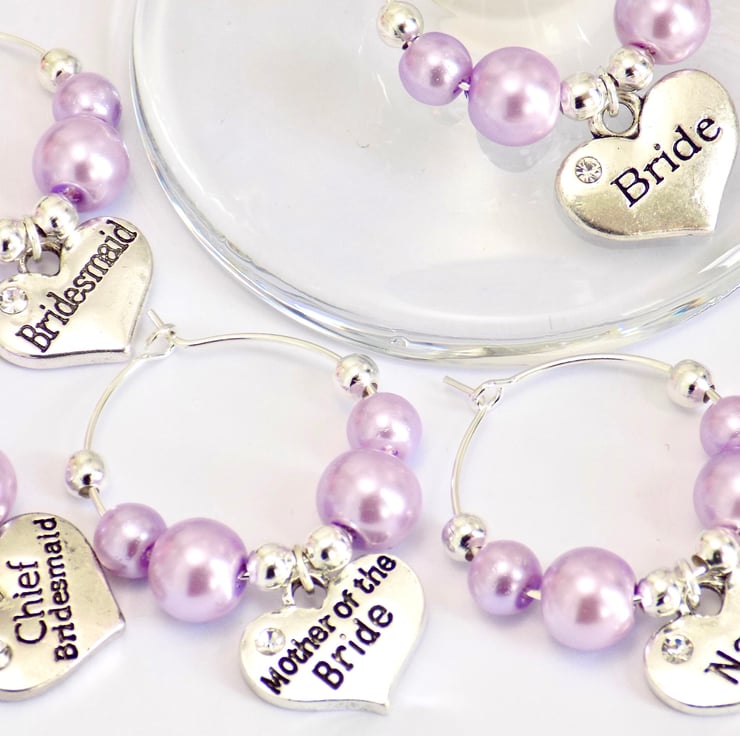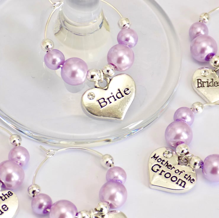 Add a touch of elegance to your celebration with these light purple wedding wine glass charms. Perfect for bridesmaids, bridal showers, hen parties, or even the morning of your wedding, while you get ready, they make a beautiful way to decorate and personalise each guest’s glass.
