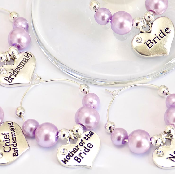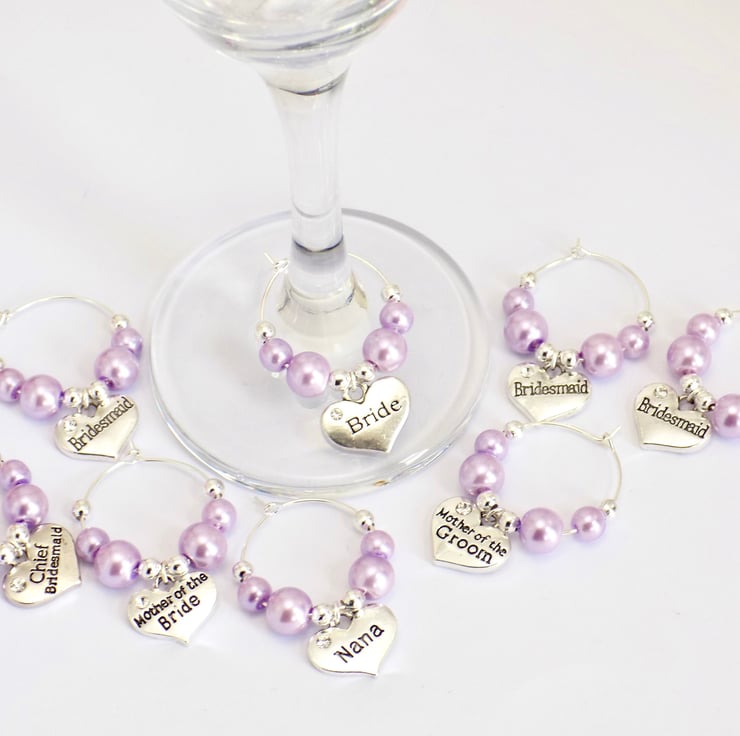 Bridesmaid Gift Wine Glass Charm, Lilac Wedding Favour, Light Purple Accessory