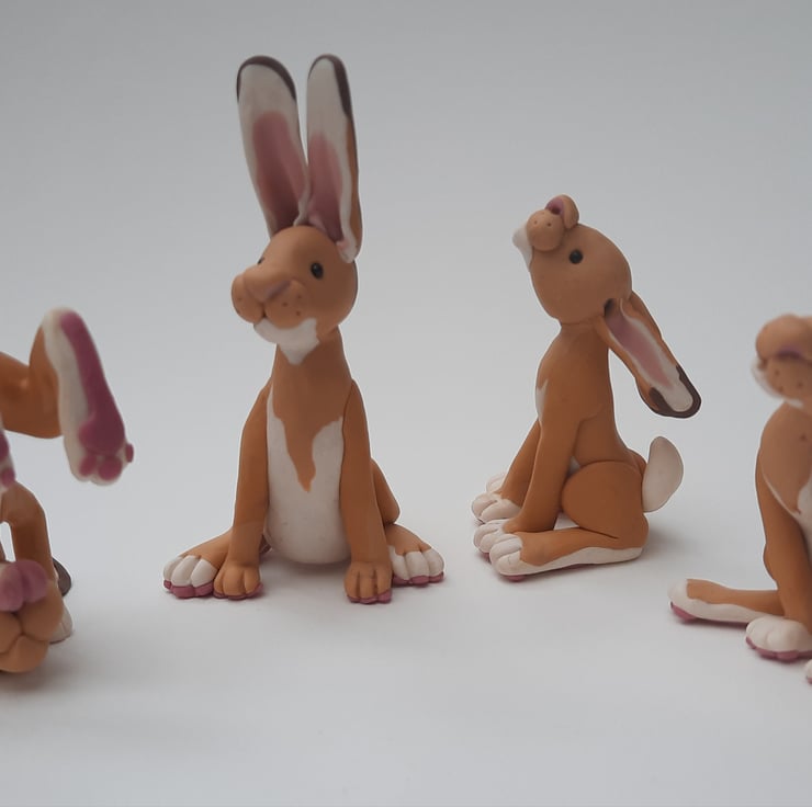 Henry is a cute little polymer clay figure, part of a series I have made. Henry like the other Hares and animals is entirely handmade, and there for unique. While I do offer a commissioning service to replicate any of the models I make, non will ever be entirely the same, and each one will always be special. All these Animal friends are approximately 7 cm long/or tall and about 5-6 cm wide, and weigh about 50g. These are sturdy little models, but they aren't meant to be toys and their are parts that could be chocking hazards. Henry has a whole family, and a collection of wild friends, have a look through my shop to find more. If you would like a really bespoke little woodland friend feel free to message me.