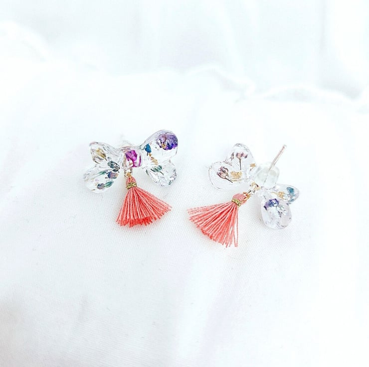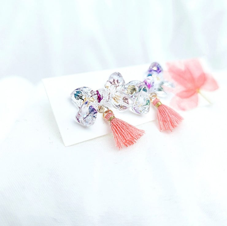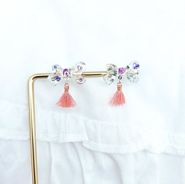 Dried flowers earrings Ribbon shape earrings Cute earrings