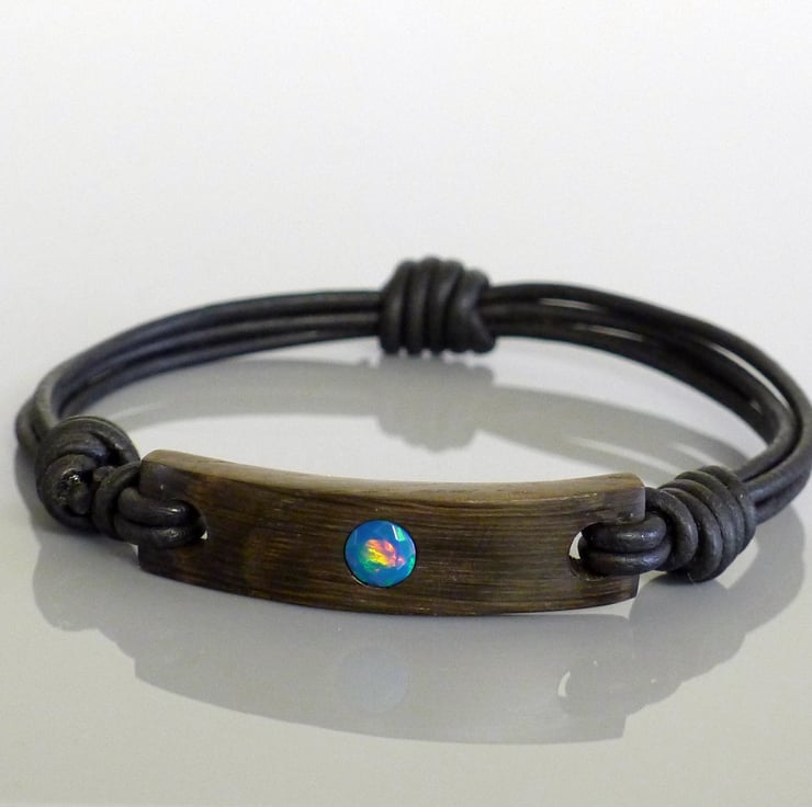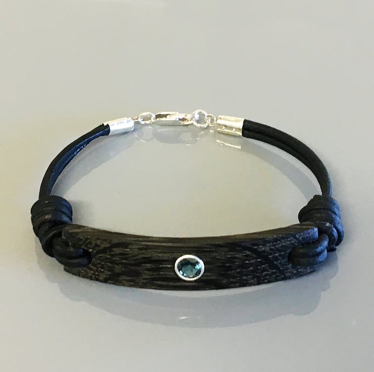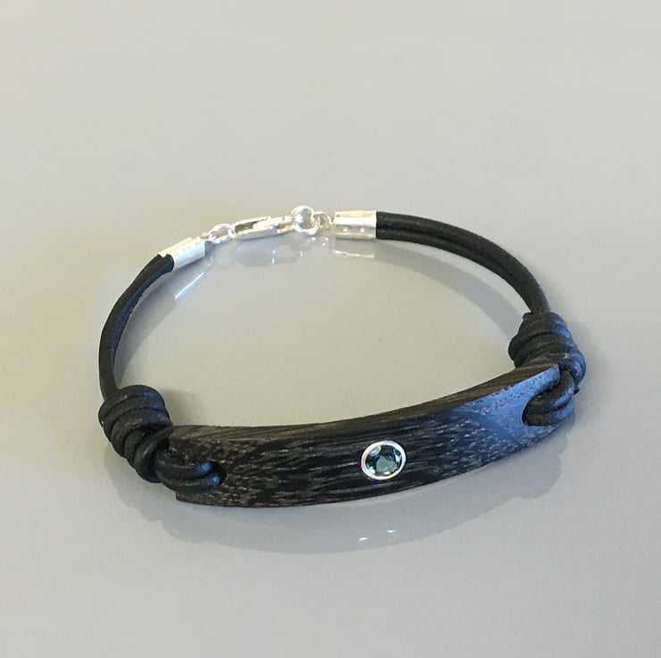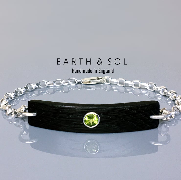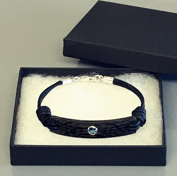 Handmade Ancient Bog Oak Wood Bracelet With Gemstone or Plain Wood.