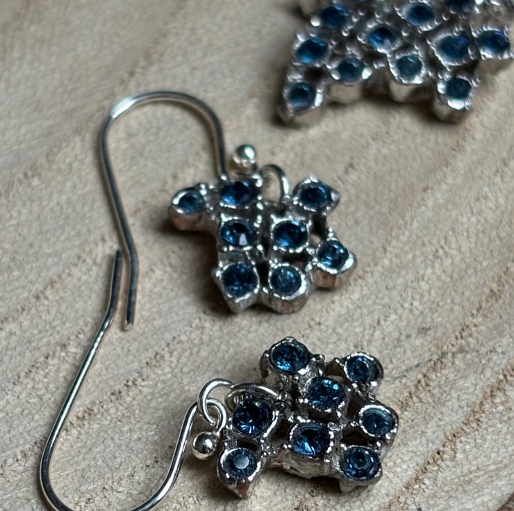 In early 2019 I found a lovely brooch in a charity shop in Darlington, North East. Pretty, eye catching blue glass stones, bright and shiny. Sadly the clasp broke so I decided to experiment with what I could create from broken jewellery.