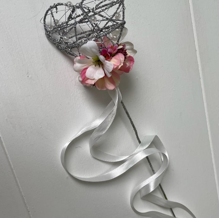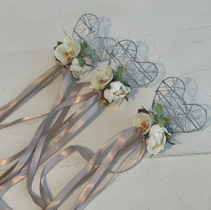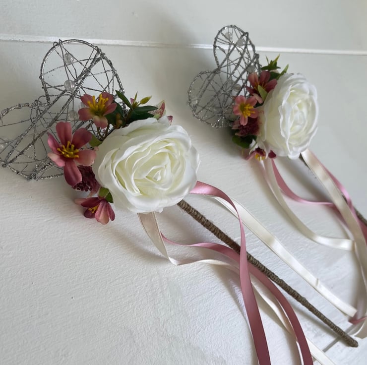 They come in a choice of flower colours and ribbons , measuring 7cm diameter and 25cm in length.