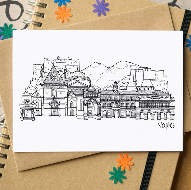 Great as a greetings card for any Neopolitan, or for someone who loves Napoli. It could also make a lovely wedding, engagement or graduation card.