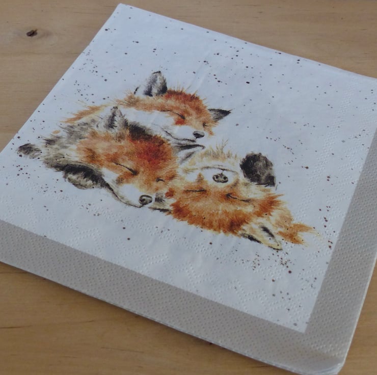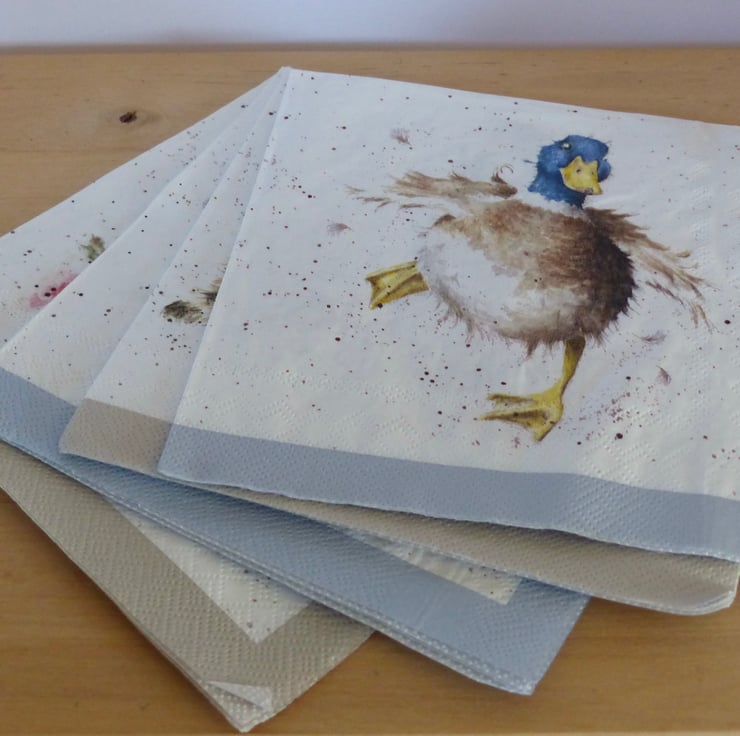 Four different 33cm square 'Wrendale' design paper napkins - Ducks, Birds, Foxes and Pheasants. The Ducks, Birds and Foxes have four different images and the Pheasants have two. Ideal for craft projects, decoupage etc. They will be sent by Royal Mail with suitable protective packaging (Probably recycled card!)