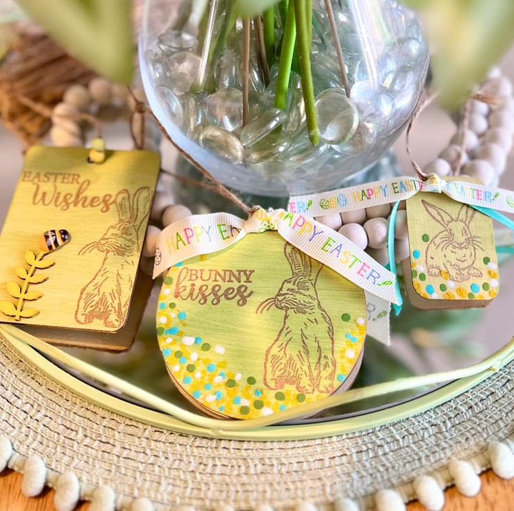 Easter Decorations 'Bunny kisses & Easter wishes Wooden Decorations and gift tag' are a set of three items.