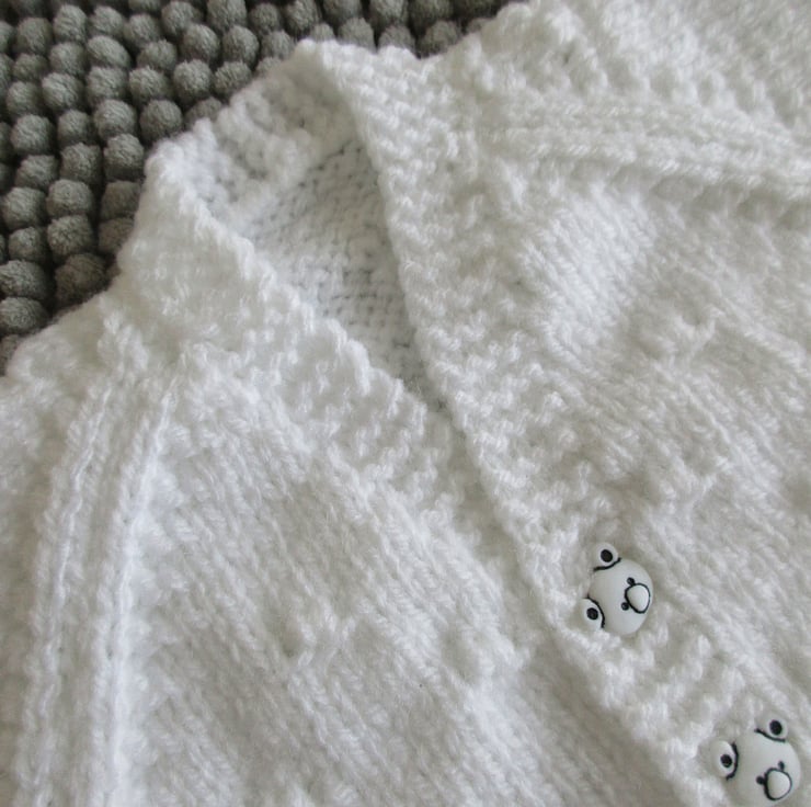 THIS CARDIGAN CAN BE MADE TO ORDER IN SIZES 14" 16" & 18" CHEST IN ANY COLOUR OF YOUR CHOICE