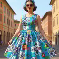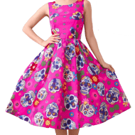 Handmade in Wales 1950s Vintage retro rockabilly full circle skirt, elasticated waist This skirt is made in a cotton poplin cherry print on a black background. It will fit multi sizes dues to the elasticated waist. 28" Long from top of waistband. This design has a built in tie belt