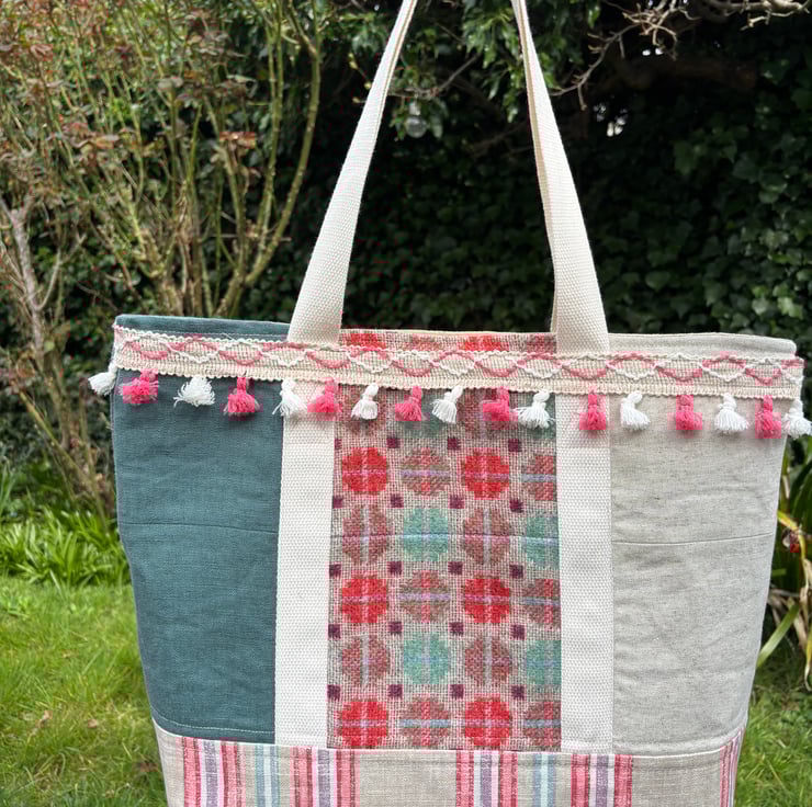 Handmade Patchwork tote bag, for Summer days in adorable pink shades.