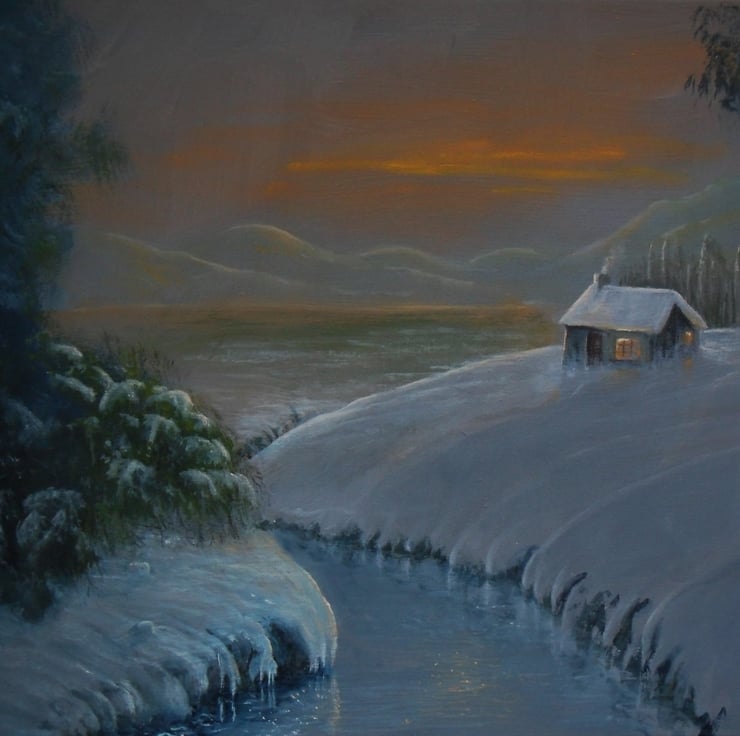 A very atmospheric painting here. You can almost here the hushed silence of the deep snow..on a bleak and freezing winter`s dusk.