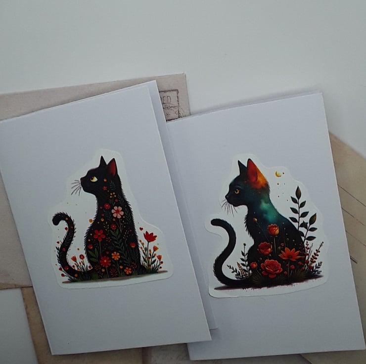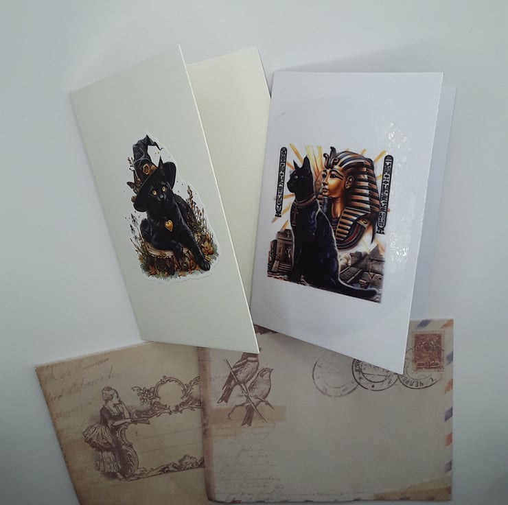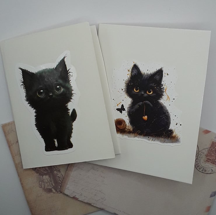 A set of 13 Lucky Black Cat Cards, with vintage style envelopes, size is approximately 9.5cm x 6.5 cm , a set of 13 magical lucky black cat mini notelet cards, the inside is blank for your own personal message.
