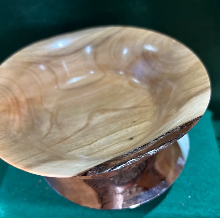 This bowl is 4.0cm (1.5”approx) tall and 12.0cm (4.75” approx) in diameter. The cherry has an amazing grain pattern and would brighten up any room.