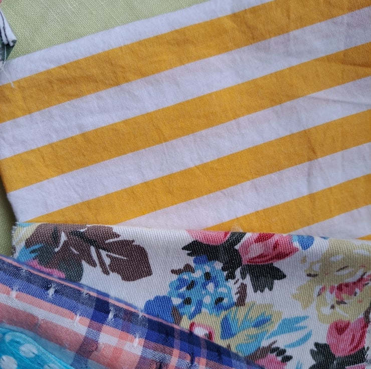 Think daffodils, hyacinths and forget-me-nots, and you'll be picturing the Springtime Bundle. Fifteen assorted pieces of cotton and linen fabric - rescued, repurposed and remnant - bursting with the joyful colours of spring. Largest piece approximately 50cm by 40cm.