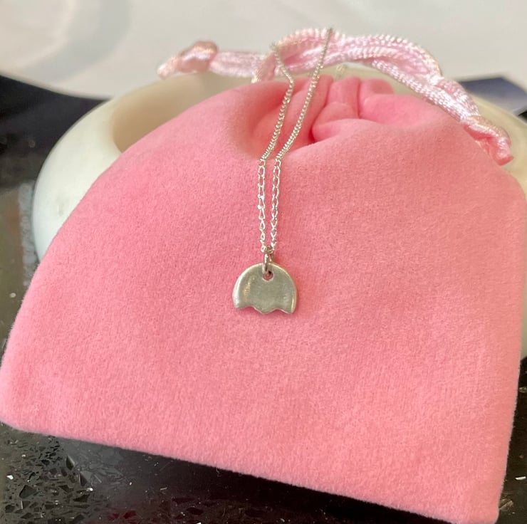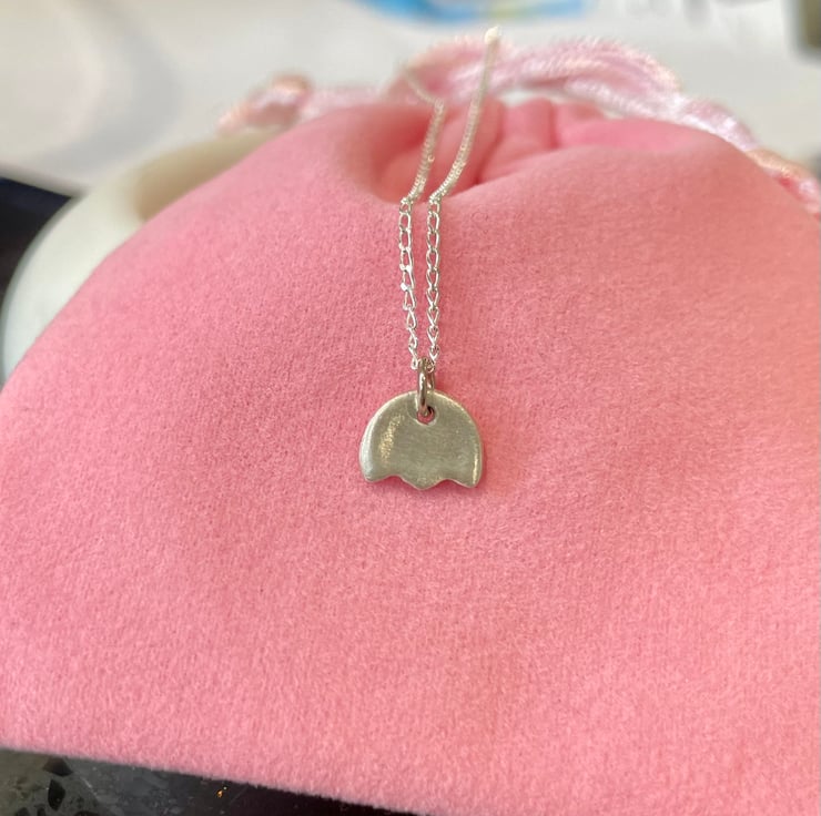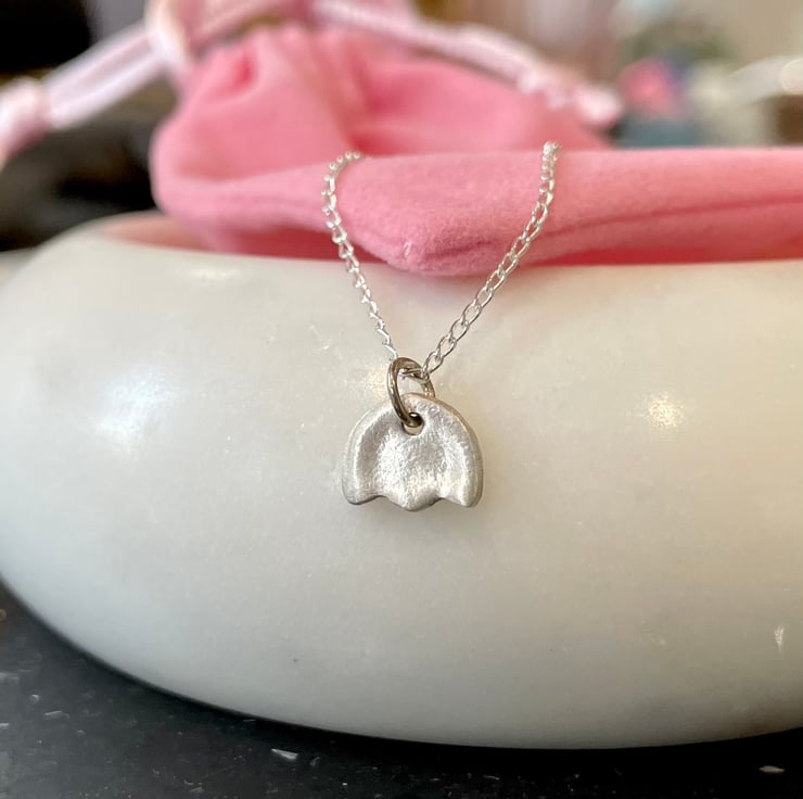 Handmade flower pendant made from 999 (99% pure) silver on a delicate sterling silver 18” chain.