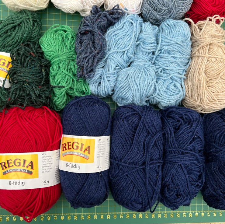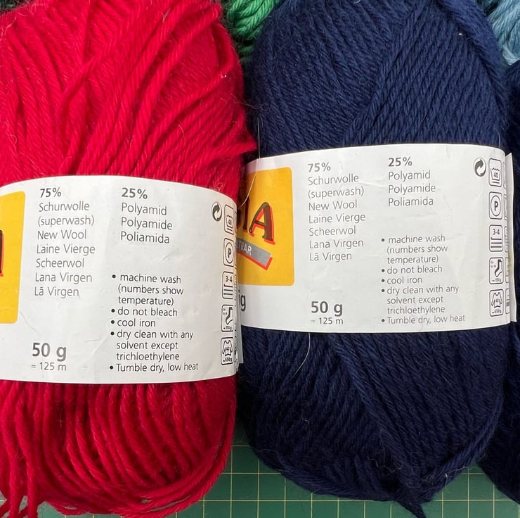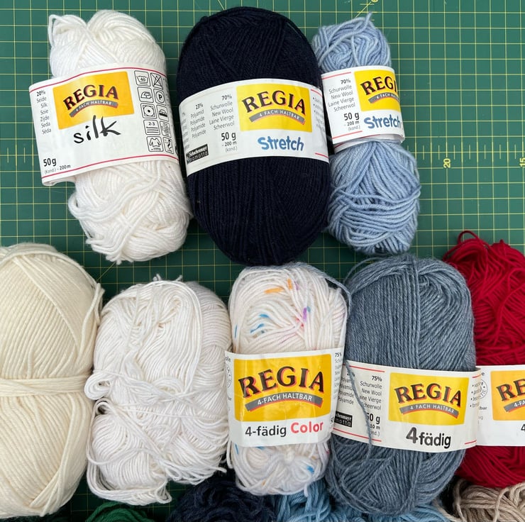 A nice big batch of around 20 assorted Regia sock yarns, some complete, some not. The wool content is 75% and they are six-ply or four-ply. A couple of extra oddments have been thrown in for fun.