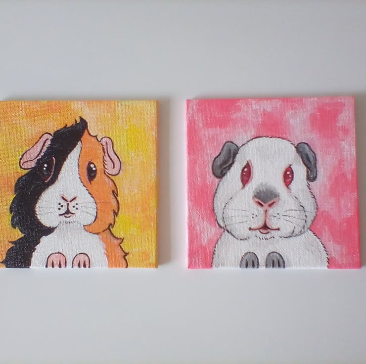 Guinea Pig Miniature Original Acrylic Painting with Easel Letterbox Gift
