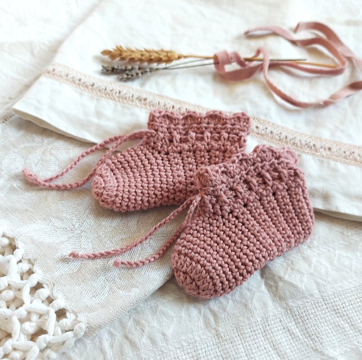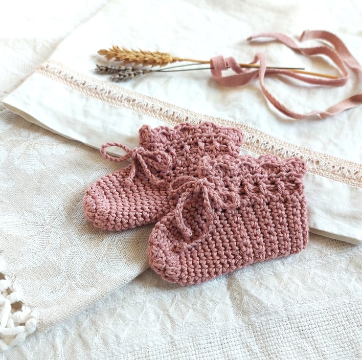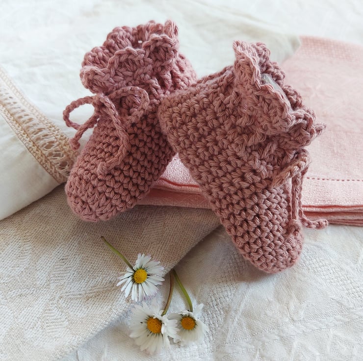 Antique rose Organic Baby Booties, new baby, certified cotton, 0-5 months