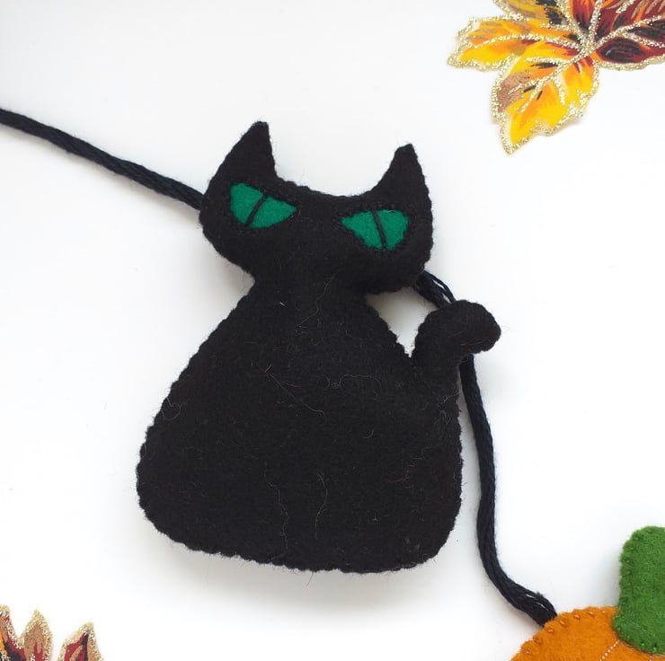 The bunting measures 92cm/36.5” from cat to bat with 80cm/32” extra length each side for tying securely with a wooden bead at each end of the cotton yarn