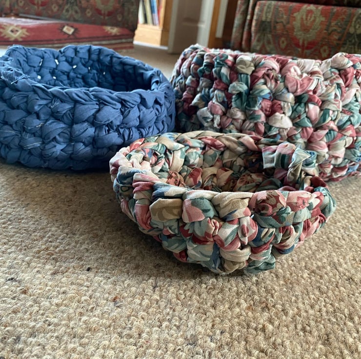 Handmade woven Nesting Bowls. Made from upcycled materials.