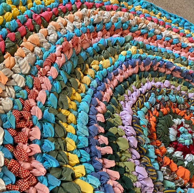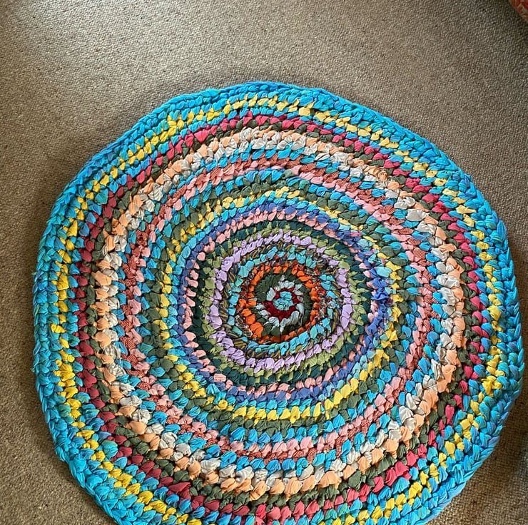 Handmade crocheted rag rugs. Made from upcycled materials.