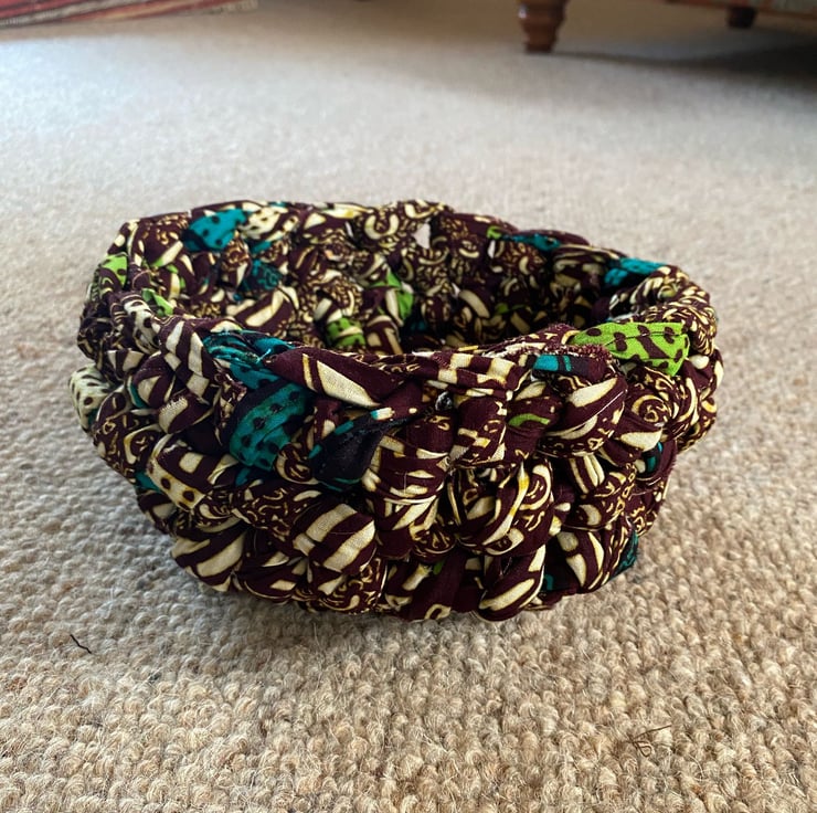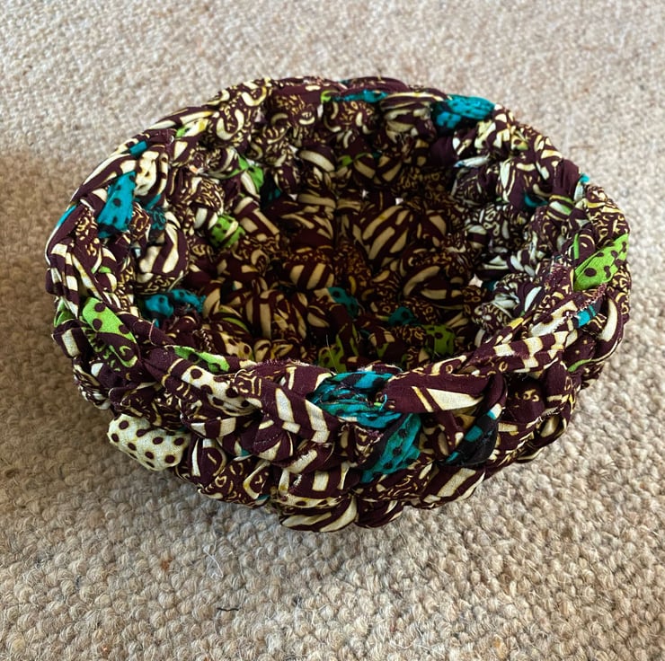 Handmade crocheted bowl. Made from upcycled materials.