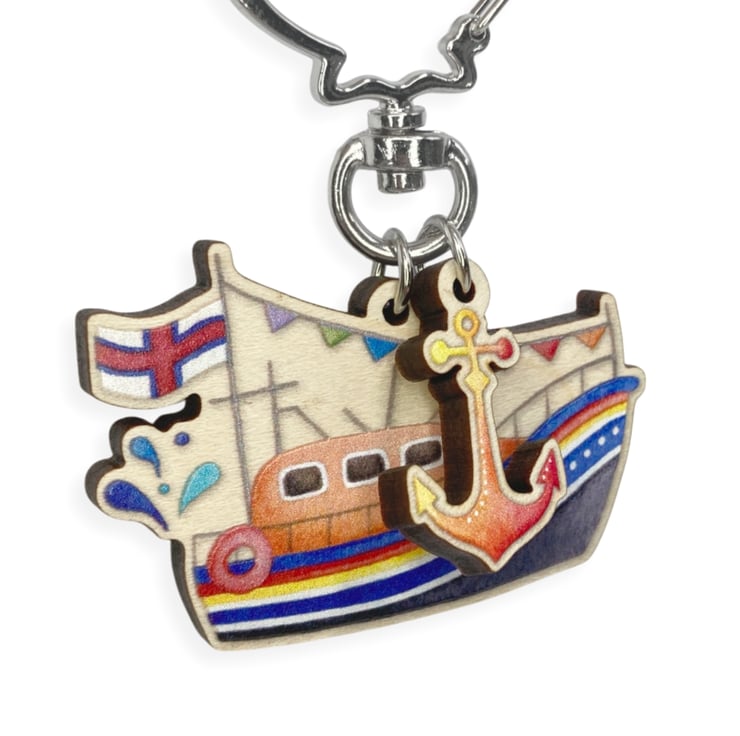 Wooden Keyring - Lifeboat and Anchor