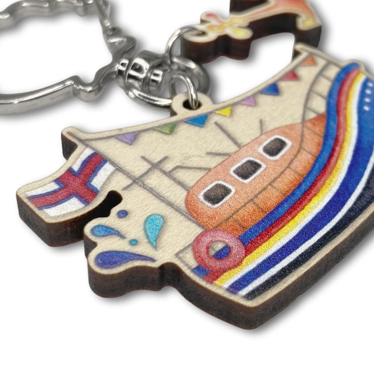 A cute keyring with two hanging charms, an RNLI lifeboat and tiny orange anchor. Crafted from beautiful maple wood, the charms are laser-cut. The ring itself is a lovely silver shell design with a simple push clasp for attaching your keys.