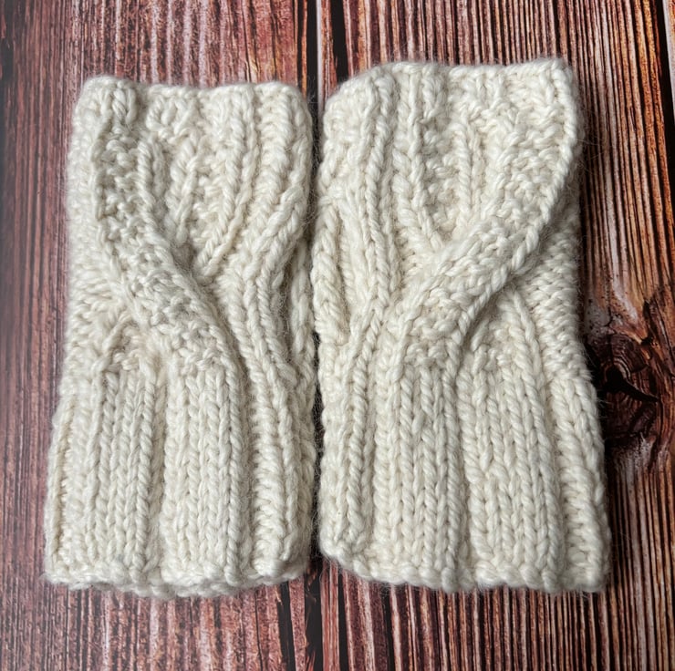 These exquisite hand-knitted cashmere wristwarmers, designed by Sandra, offer the perfect blend of warmth and sophistication. The intricate cable detailing adds a touch of elegance, while the ultra-soft cashmere provides exceptional comfort. Ideal for crisp mornings or layering through the colder months, they bring effortless luxury to everyday wear.