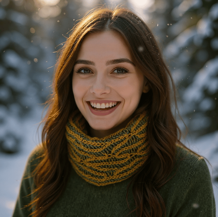 Mustard & Green Hand knitted Snood Cowl