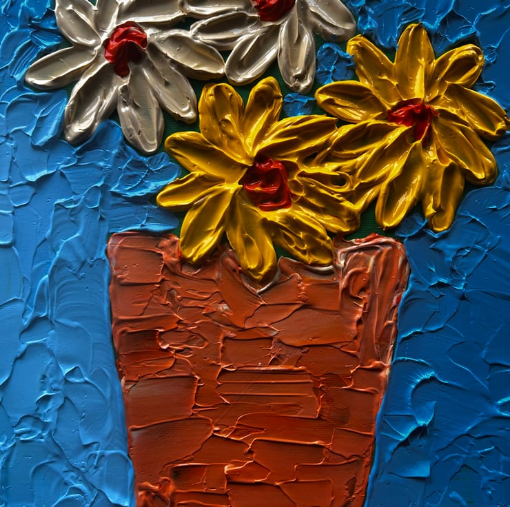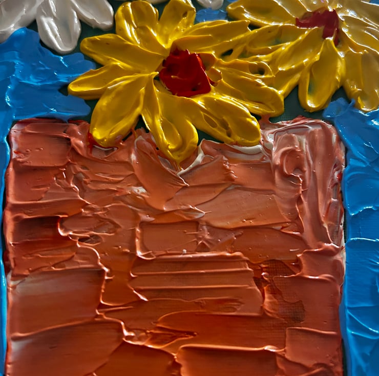 Acrylic professional bodied paint mixed with a heavy gloss gel, this creating an impasto painting.