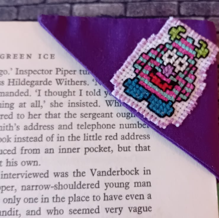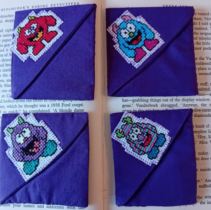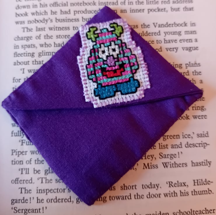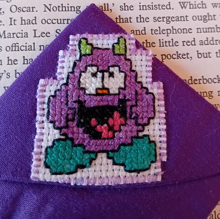 Add a unique touch to your reading with these adorable monster corner bookmarks! Each one is lovingly hand-stitched with cross-stitch detailing and features an upcycled plastic insert (made from milk bottles!) for extra stability.