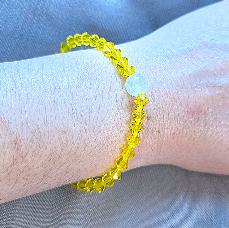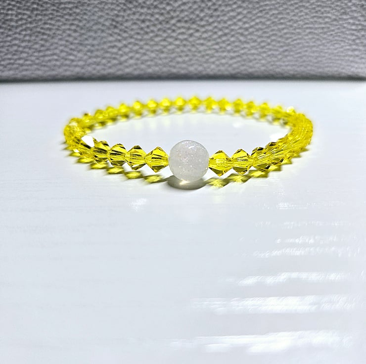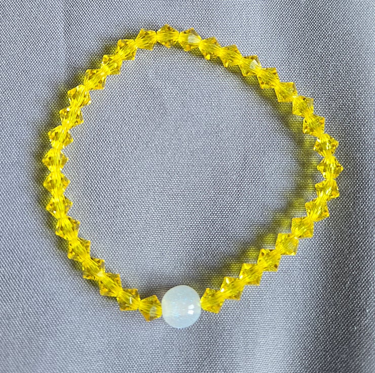 Hand made to order this super sparkly Stretchy Bracelet is made with 6mm Bicone Citrine Preciosa Crystals, it looks beautiful from any angle when the light hits it and is finished off with a sparkly 8mm Resin Bead giving it a bespoke luxury finish.