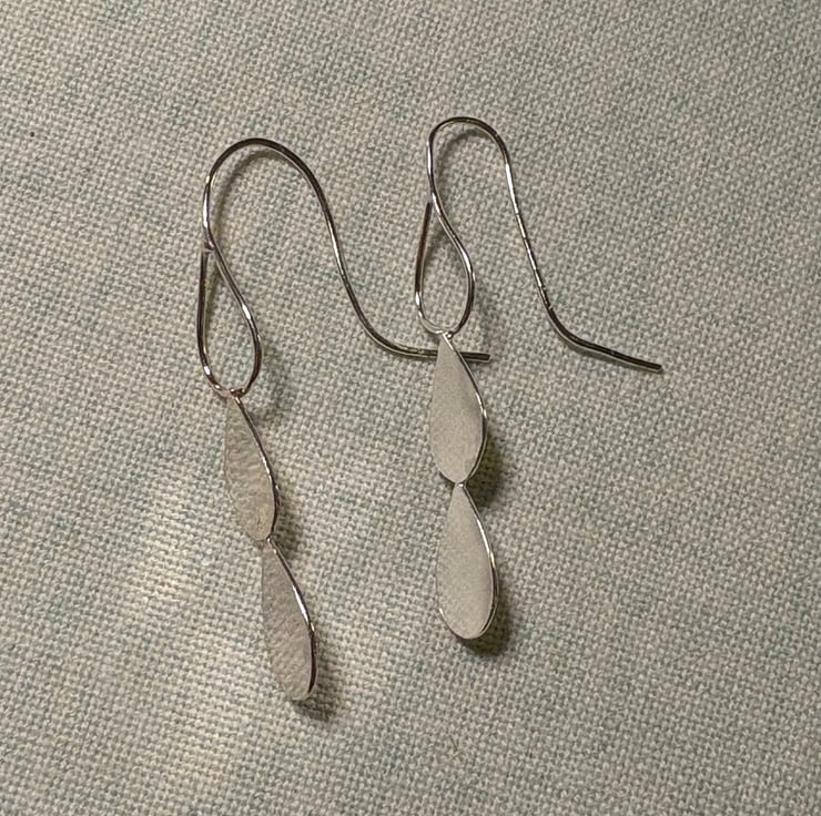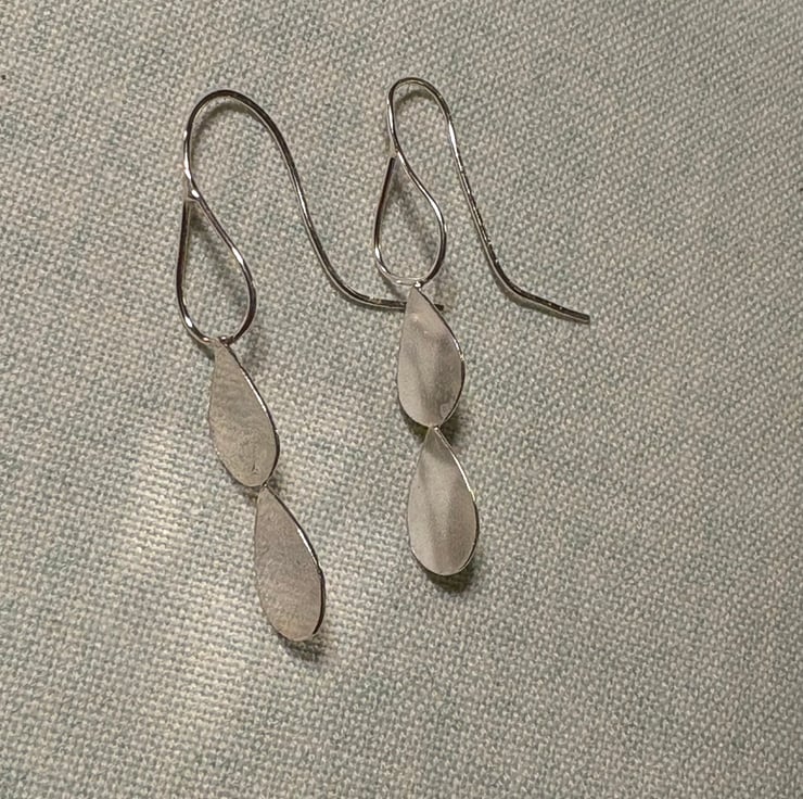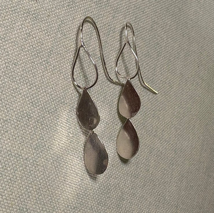 Tear drop recycled sterling silver earrings handmade in Sheffield.