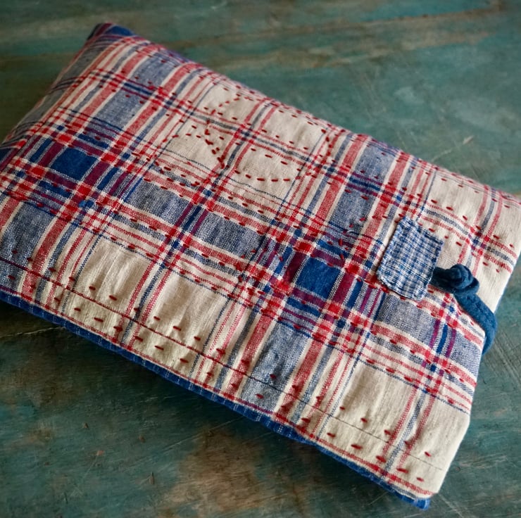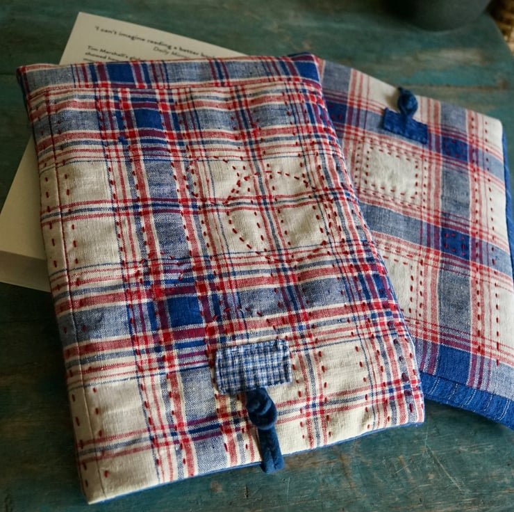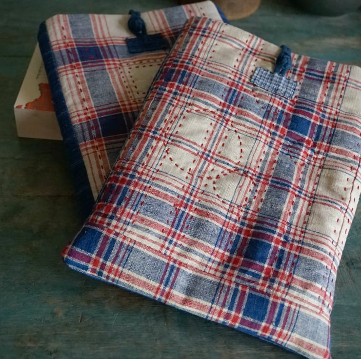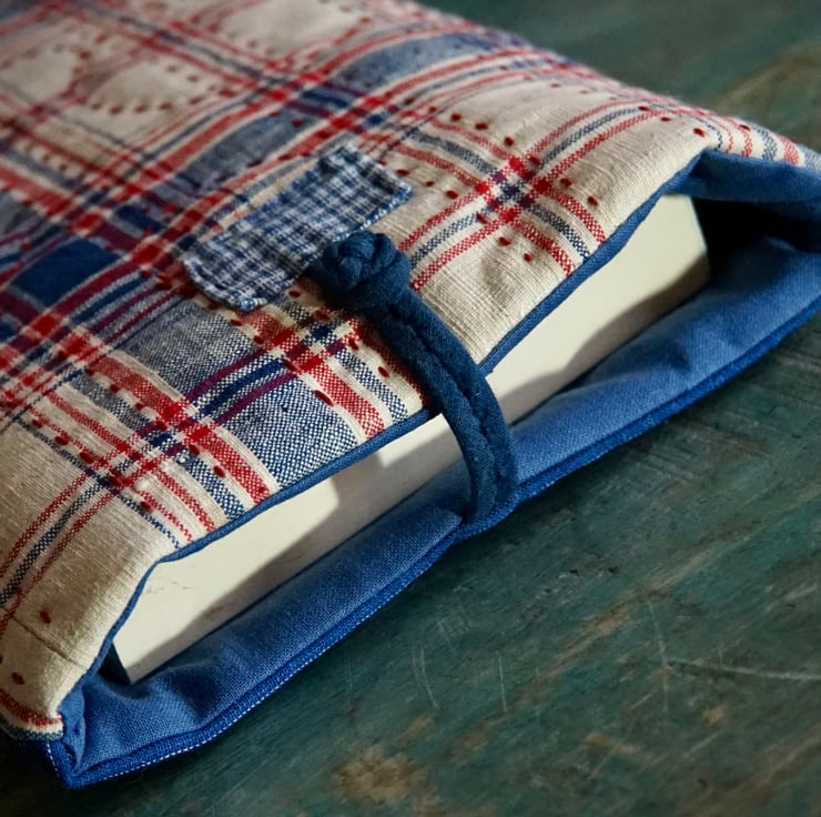 This handmade book sleeve, crafted from vintage fabric with decorative sashiko stitches, keeps books protected and adds a touch of charm to every reader's routine. Lightweight, durable, and beautifully unique - just like the stories it holds. Perfect for gifting to anyone who treasures quiet moments, cozy reads and meaningful details.