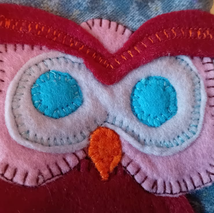 Keep your glasses safe in style with this charming handmade glasses case! Featuring a sweet appliquéd felt owl perched on a backdrop of upcycled fabric, each case is a unique little hoot.