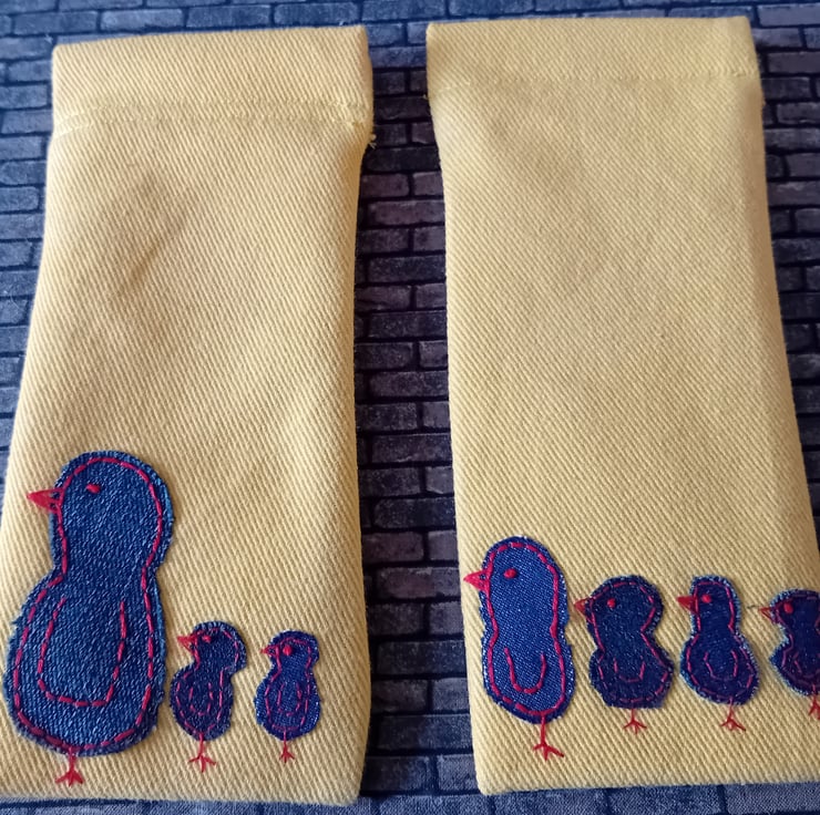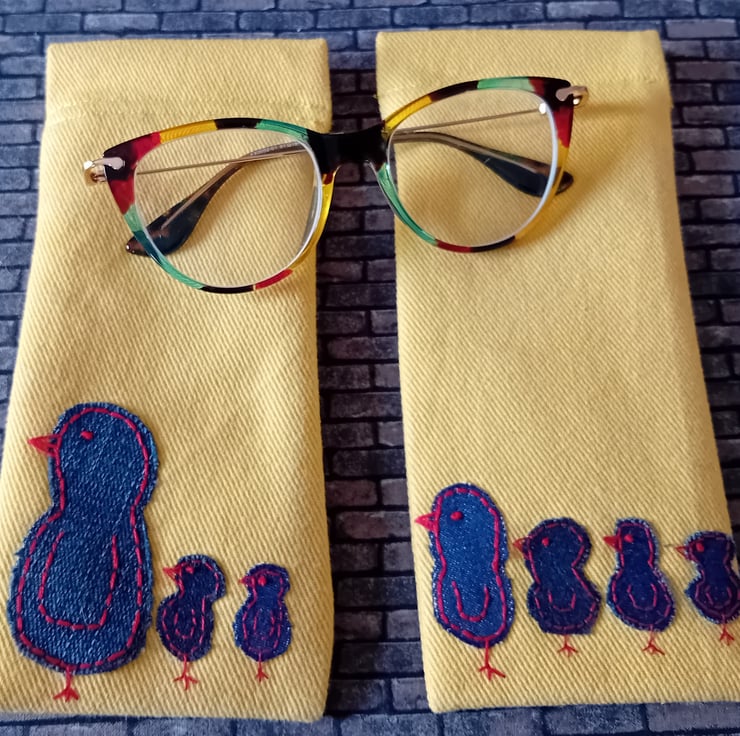 As glasses wearers, we wanted to create something that was both fun and practical—because keeping your specs safe shouldn’t be boring! Using upcycled yellow denim, we designed these cases to be sturdy, secure, and full of personality. The appliquéd denim birds, accented with bold red stitching, add a playful touch, while the snap closure ensures your glasses stay put. Handmade with care and a love for reimagining materials, these cases are a little bit of everyday joy.