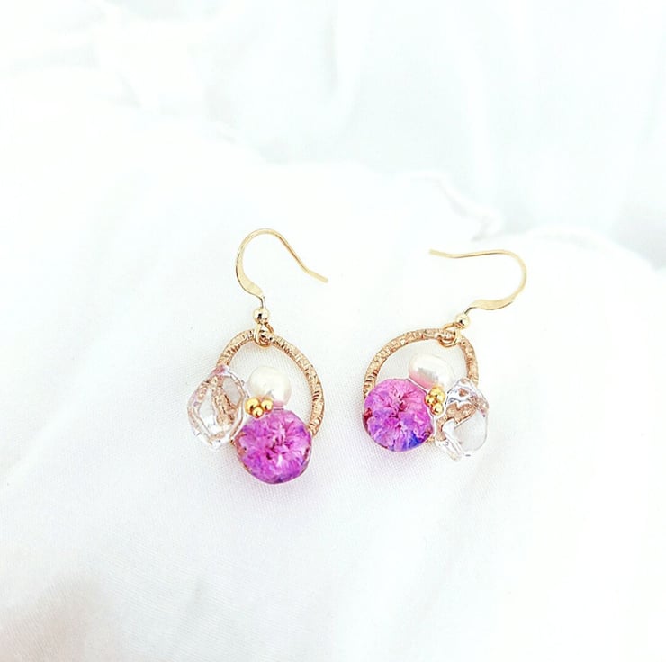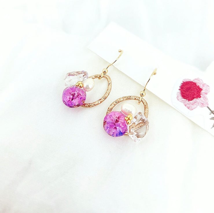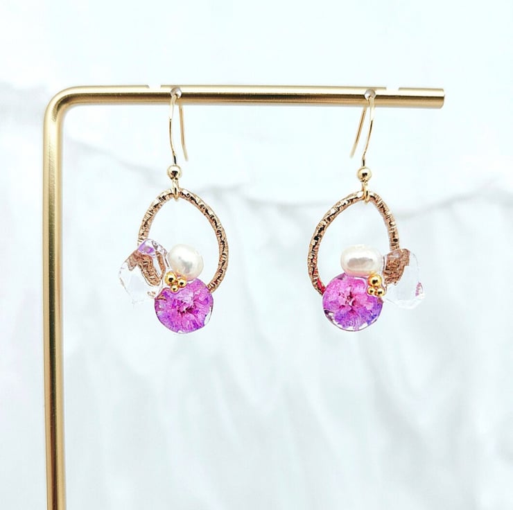 Materials: Dried Flower, Freshwater Pearls and Japan UV-Resin