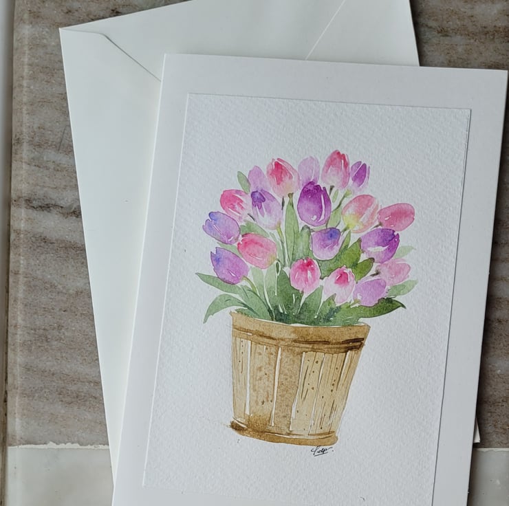 The artwork painted on high grade artists quality watercolor paint, on artists 190 GSM watercolour paper. And it's layered on the card